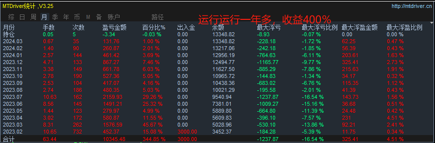 [MT4-EA]暴利顺势小马丁,自带止损止盈风控,月收益100%